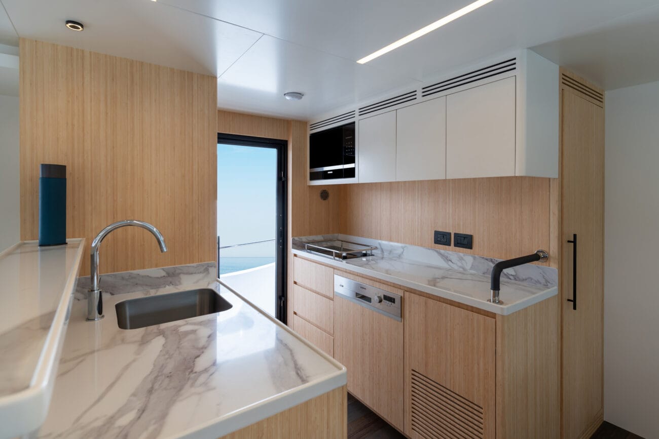 With a 2,000-nautical-mile range, whether cruising from Sydney Harbour to north of the Great Barrier Reef, or covering much of the Indonesia Archipelago, or travelling from Oman to Jeddah, all this is all possible with this pocket adventure yacht, something not many yachts of this size can deliver.