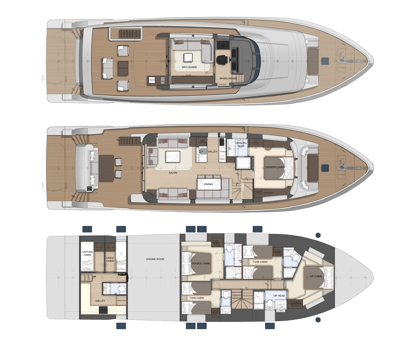 Designed to be driven, the Nomad 70 is an owner’s yacht, big enough to travel long distances, but small enough to be managed by a group of friends on a remote fishing or wilderness golfing trip.