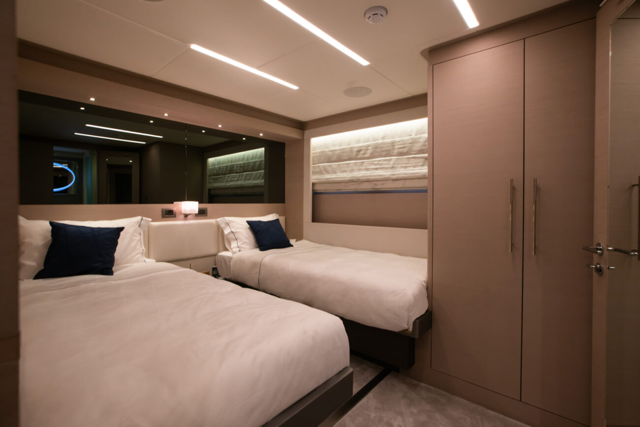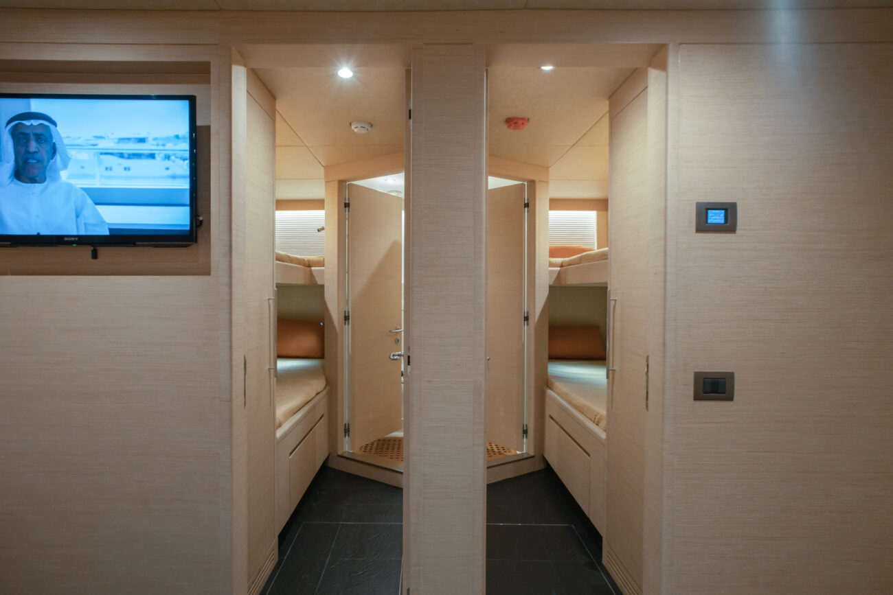 With her enclosed upper and main deck cabins, with excellent vertical windows, this yacht is perfect for all climates, above and beyond the Equator, whether you’re heading to the Fjord’s of New Zealand or Norway or cruising from Jeddah to Jordan, she is designed for all year-round comfort.